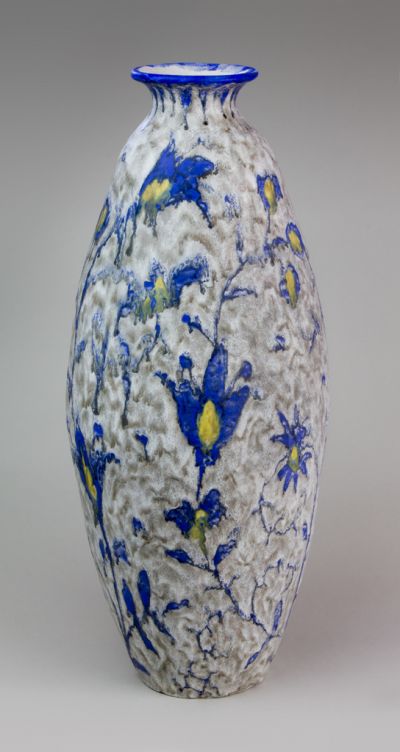 | Technika: | folyatott, színes mázakkal; repesztett (ún. craquelé) máz; sablonnal korongozott |
