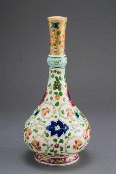 Technika: | arannyal kontúrozott; kobaltkékkel kontúrozott; öntött forma; színes mázakkal festett; ún. aranybrokát díszítés |