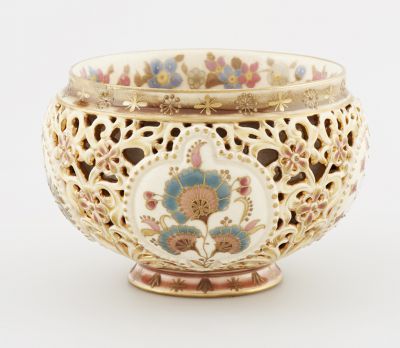 Technika: | áttört; magas aranyozás; mázas; színesen festett |