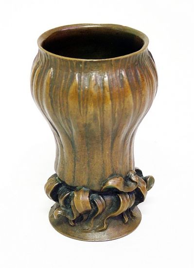 Kerek talpára kihajló stilizált levéldísz borul. Felső része körteszerűen kidomborodik, felületén függőlegesen sorakozó hegyes végű levélsorok.