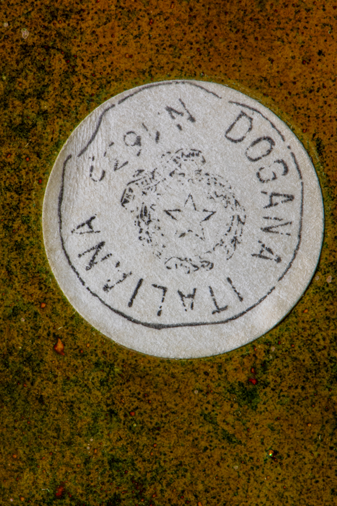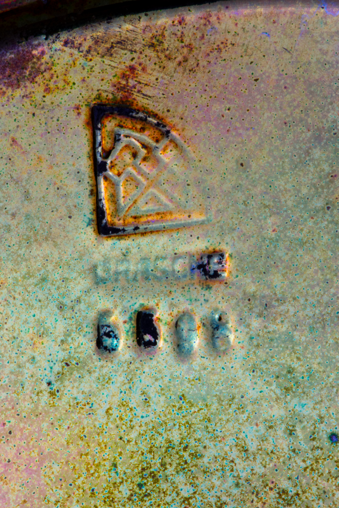 | Technika: | máz felett redukáltan égetett fémlüszter; öntött; savmaratott |